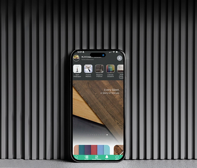 Rather than offering veneers as finishes alone, the portfolio functions as a surface ecosystem, enabling architects and interior designers to specify materials based on construction, thickness, performance, and design intent. From reconstituted veneers engineered for large-scale continuity, to fluted systems, textured surfaces, pre-finished colored veneers, liquid metal finishes, and handcrafted artistic veneers- each range serves a distinct architectural purpose.